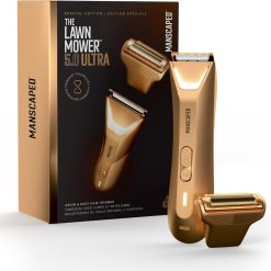 The Lawn Mower® 5.0 Ultra Groin & Body Hair Trimmer – Dual-Head SkinSafe® Trimmer & Foil Blades, Waterproof Groomer, USB-C Rechargeable with Travel Case, Men’s Ball Shaver, Forged Gold