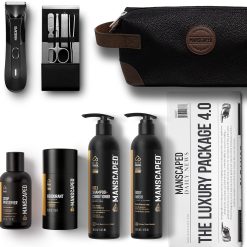 The Luxury Package 4.0 Includes: The Lawn Mower® 4.0 Electric Trimmer, The Shears 2.0 Nail Kit, Crop Preserver®, Deodorant, Body Wash, 2-in-1 Shampoo & Conditioner, The Shed Toiletry Bag