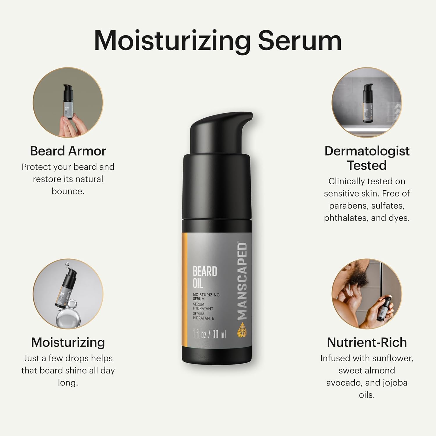 - BEARD OIL: The skin beneath the beard is often overlooked. Our nutrient-rich oil helps increase your natural shine and restore moisture to the skin underneath.