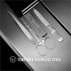 - WHAT’S INCLUDED: Slant-tipped tweezers, rounded point scissors, fingernail clippers, medium grit nail file, in a compact premium PU Leather case.