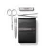 - WHAT’S INCLUDED: Slant-tipped tweezers, rounded point scissors, fingernail clippers, medium grit nail file, in a compact premium PU Leather case.