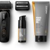 The Chairman™ PRO Package – Men’s Electric Face Shaver with Two Interchangeable Blades, SkinSafe® Four-Blade Foil & Stubble Trimmer, Power Shave Gel, Face Shave Soother Aftershave
