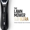 - THE LAWN MOWER 5.0 ULTRA: Includes two Interchangeable SkinSafe Blade Heads: A Trimmer Blade & Foil Blade. One fixed-length comb at 1.4mm and two adjustable combs ranging from 2-12mm, power adapter, USB-C cable, and a travel pouch. Our trimmer is USB-C and wireless charging compatible.